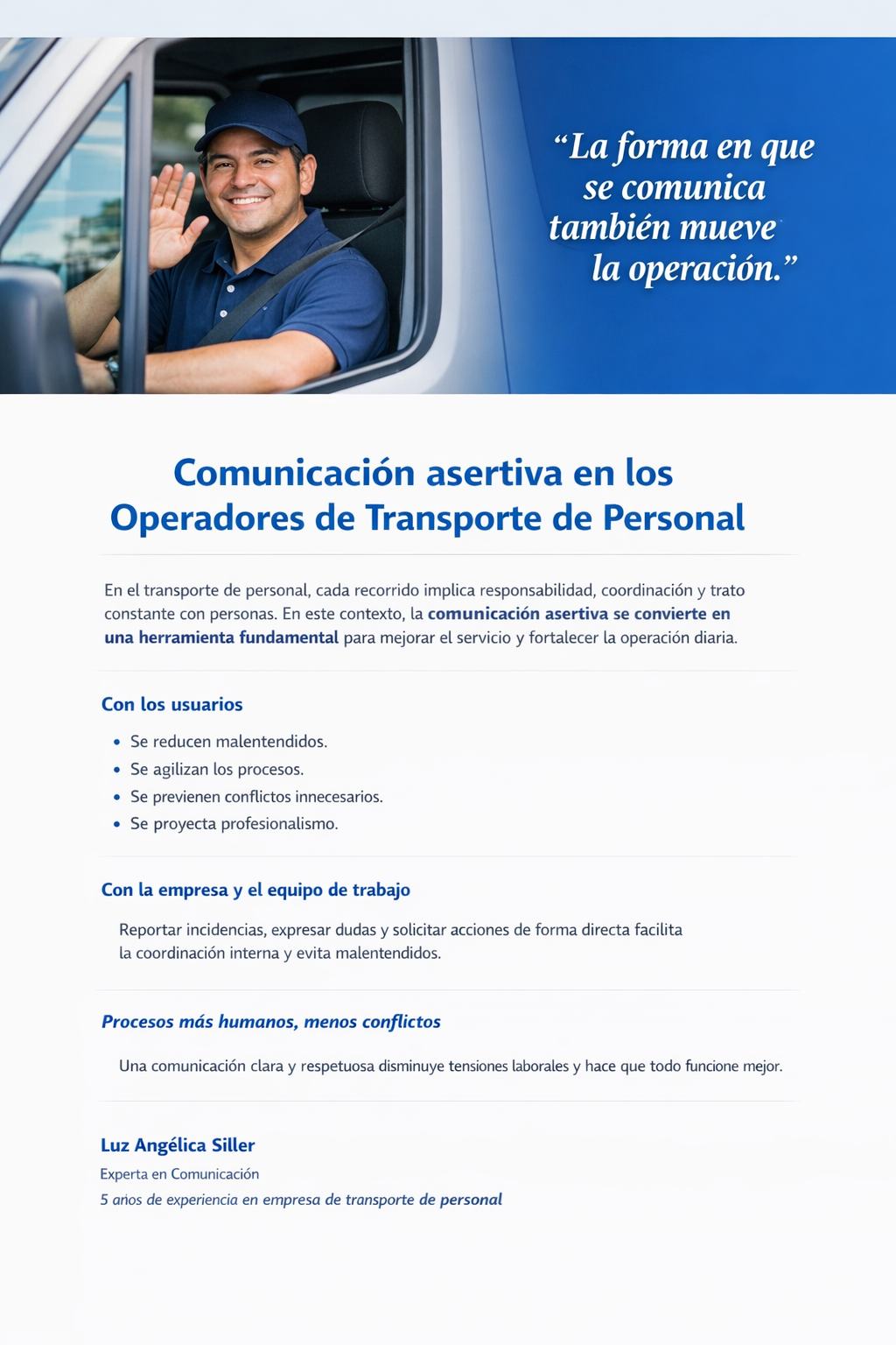 Comunicación asertiva en los Operadores de Transporte de Personal